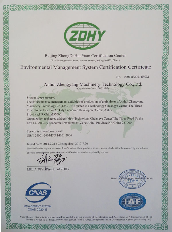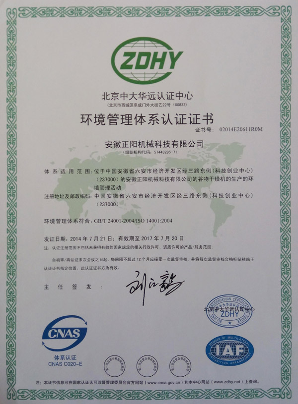 環(huán)境管理體系認(rèn)證證書(shū)